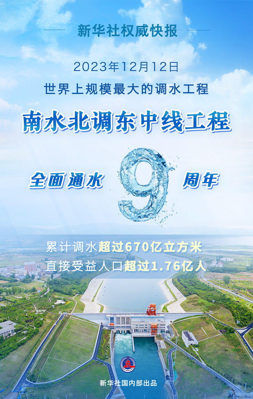 新華社權威快報|南水北調東中線工程全面通水9周年 累計調水超過670億立方米