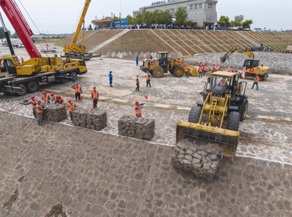 本次演練設有工程搶險、技術保障、調度運行、組織轉移、信息發布、協調保障6個工作組,設置了應急交通、電力、通信保障,群眾避險轉移,應急退水調度,河堤垮塌處置,子堤加高,裹頭四面體防護,裹頭鉛絲石籠防護7個實戰演練科目。三百余人參與實戰演練,百余人進行觀摩。